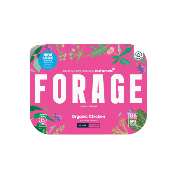 INGREDIENTS Organic British Chicken with Bone, Boneless Grass Fed British Beef (Meat, Heart, Liver), Whole Seasonal Oily Fish, Organic Broccoli, Whole Blackberries, Free Range British Egg, Organic Kale, Sustainably Hand Harvested Organic Scottish Seaweed, Wheatgrass, Pumpkin Seeds, Hemp Seeds, Sustainably Sourced Scandinavian Blue Mussel (Msc), Cleavers, Nettles, Pure Yorkshire Sea...